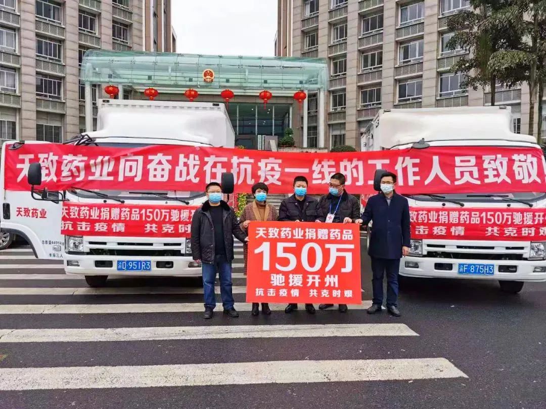 疫情期间,天致药业以刘玉琴董事长为领导核心,在集团其他领导的协同配合下,江宁发总经理积极协调安排多次捐赠驰援活动。先后与开州经信委、开州区政协、工商联、开州区红十字会、开州各医疗机构等多个地方组织取得紧密联系,为天致药业树立良好企业品牌形象做出重要贡献。